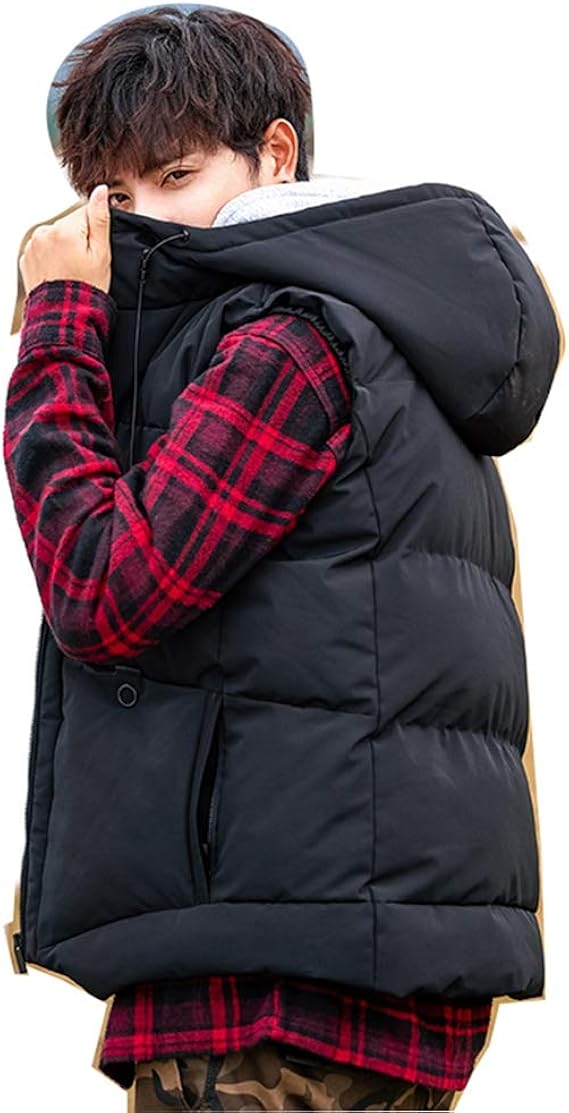 18 新ファッション厚いベストメンズ冬ノースリーブ襟ベスト男性カジュアル冬立襟フード付きチョッキ Z13mjc0r